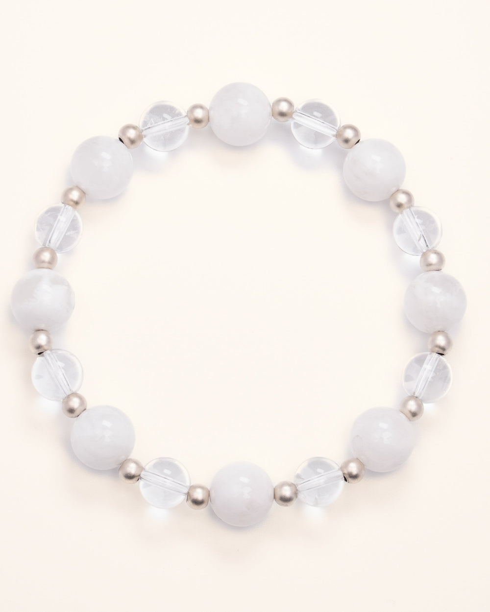 Cleanse your spirit and step into a state of serene harmony. The Aura Purification bracelet is a beautifully minimalist piece designed to wash away negativity and restore your inner balance. It features calming, snowy orbs of White Jade, a stone of peace and purification, alternating with luminous beads of Clear Quartz. Accented with delicate 925 Sterling Silver, this bracelet is a gentle yet powerful tool for anyone seeking to clear their energetic field, soothe their emotions, and attract peaceful, positive vibrations into their life.